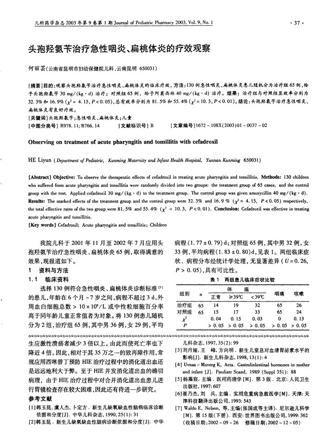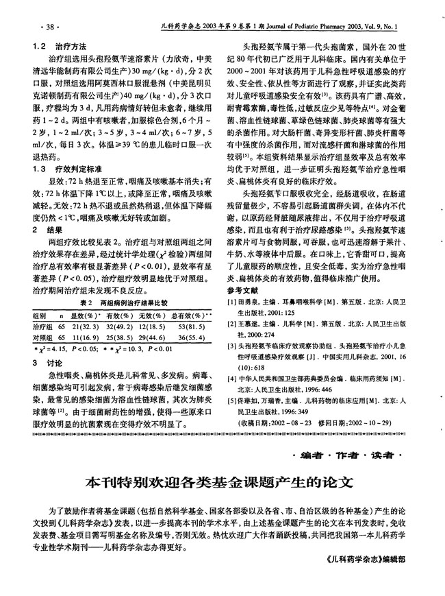 头孢羟氨苄治疗急性咽炎扁桃体炎的疗效观察——力欣奇