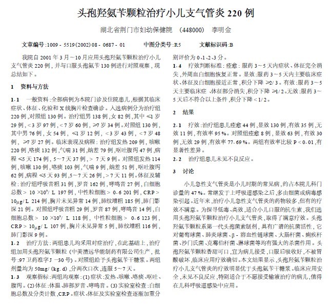 头孢羟氨苄颗粒治疗小儿支气管炎220例力欣奇[2002]